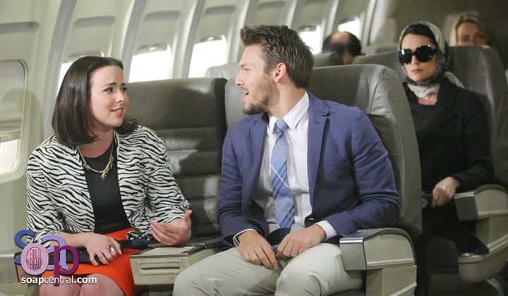 Later, Liam sat in his seat on the airplane. Scott Clifton's "Gravity" played as Liam flashed back on his years-long romance with Hope. Ivy rushed down the aisle to take her seat beside Liam just moments before takeoff. A couple aisles back, Quinn, cloaked in a scarf and sunglasses, lowered the magazine that had shielded her face.