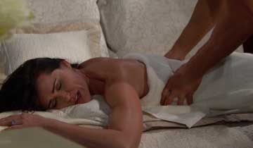 Quinn entered in a towel. She was ready for her massage. Eric kissed her and left. Mateo said he had scented oil ready for her. He rubbed her back and neck, and Quinn moaned in approval. Mateo flashed back to hearing Sheila's voice offering $200,000 to "get the job done."