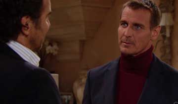 Alone with Thorne later, Ridge poured coffee at the coffee table. Thorne said he couldn't help but notice that Ridge wasn't as happy as Eric and Brooke about Thorne's homecoming, and if Ridge had a problem, he should say it. Ridge asked if Thorne would then hop on a plane back to Paris. Thorne said he would not, but he'd know where he stood.