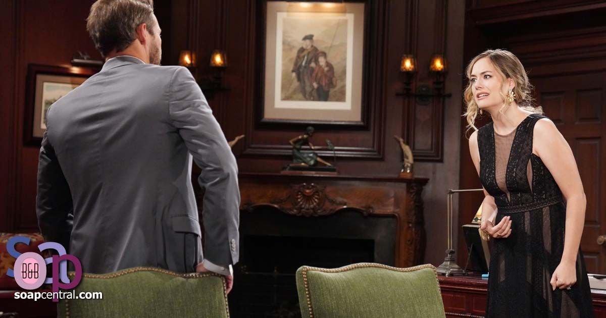 Bill asked if Hope had forgotten the horrible, criminal things Thomas had done. Liam said Thomas had tried to kidnap Hope and had lied for months about Beth. Liam didn't know how Hope could even look that man in the eye. Liam asked if it was just him. Bill validated Liam's feelings and said Hope shouldn't be near Thomas. Wyatt said that whether Hope knew it or not, she needed Liam more than ever. Liam's brows furrowed.