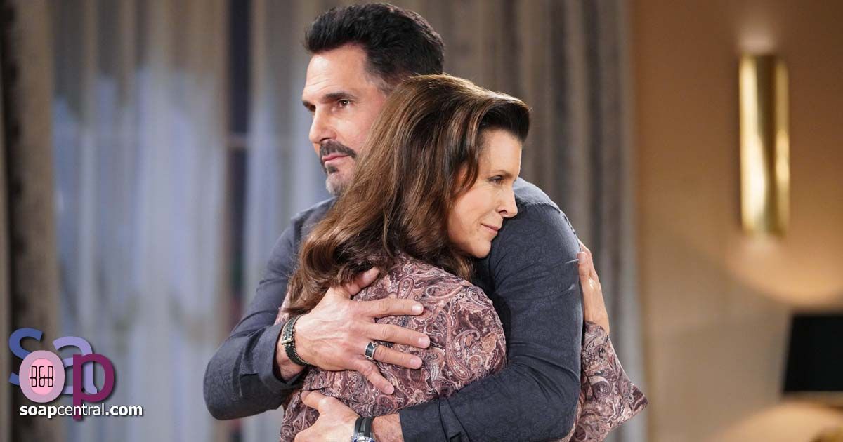Brooke asked if Taylor could imagine herself with a man other than Ridge for the rest of her life. Taylor shook her head. "So, that means we're just alone, and never getting to have that kind of affection ever again?" Brooke asked. Taylor said "no" repeatedly and pulled Brooke into an embrace. The two women wiped tears from their eyes. Taylor promised to be there for Brooke but said that she was not sure that she could accept Brooke's invitation to move in with Brooke.
