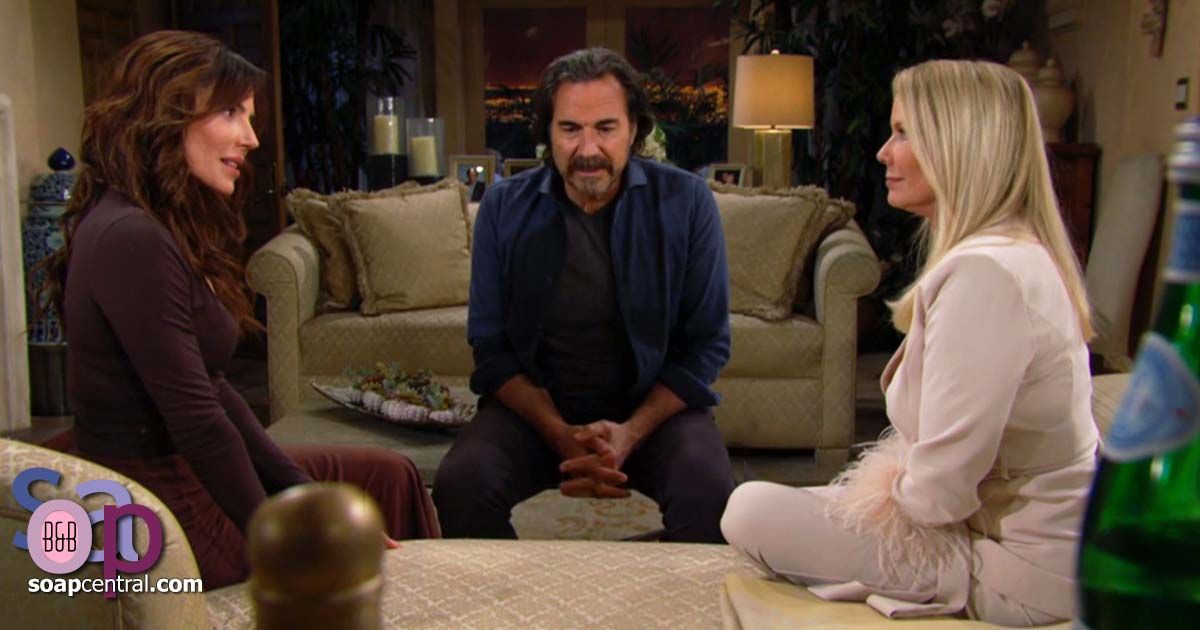 Steffy and Thomas gently probed for additional details about Brooke and Taylor's decision to not be involved romantically with Ridge. "We're putting our friendship over feelings," Taylor explained. Taylor clarified that Brooke and Ridge would not be having a "cozy dinner for two" because Liam, Hope, and the kids would all be there.