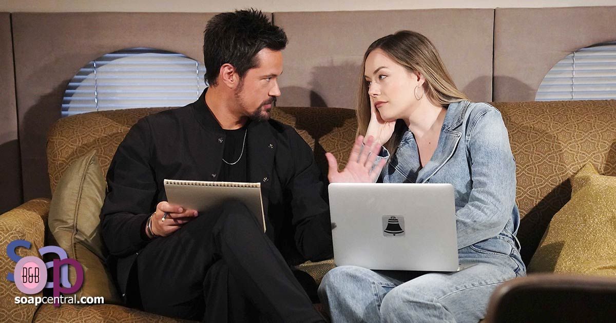 Though Steffy still had her concerns, she figured that Hope and Thomas wouldn't be alone as they'd been on the last trip, and they'd be crazy busy. Liam wasn't worried about Hope, but Steffy expressed worry that Hope had unacknowledged feelings for Thomas, feelings Hope hadn't acknowledged to herself or Liam.
