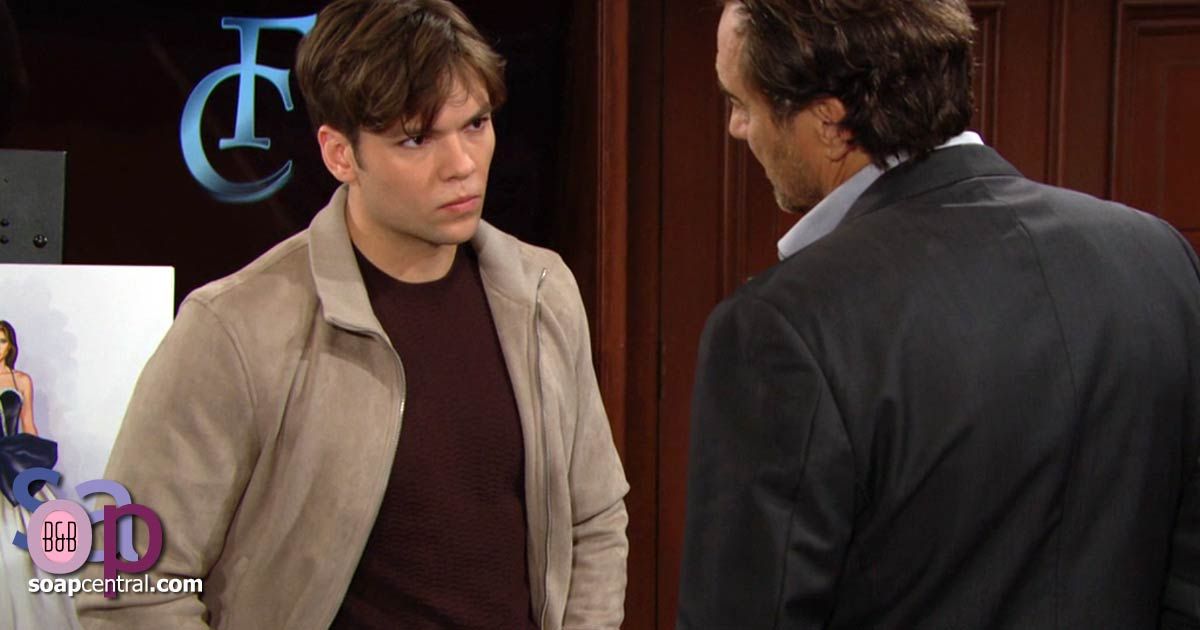 Ridge tried to give Zende a line about the industry, but Zende asserted that he'd grown up in the industry with successful and talented designers for parents. Zende reminded Ridge that Zende was Kristen's son, but Zende wondered if the problem was that he wasn't Ridge's son. Zende said it felt as if Ridge would push aside all other family members so that his kids could shine.