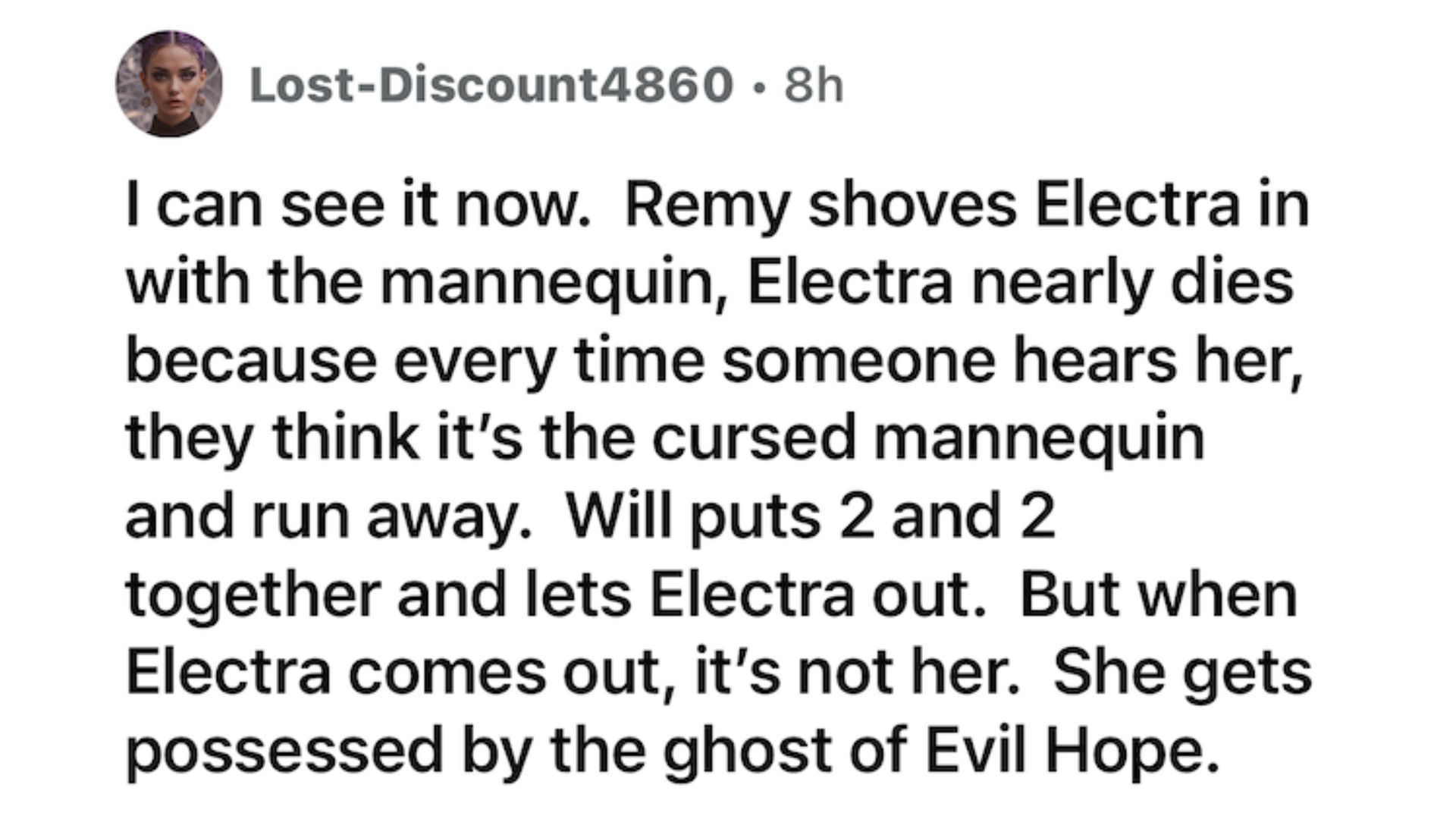 On the subreddit, r/boldandbeautiful, contributor RemarkableWriting394 posted a picture of Remy talking to Electra with the box clearly between them, commenting, “Makes no sense! Didn’t they lead us to believe this thing was destroyed after Thomas’ mannequin crisis? Why would they bring it back now, and so centrally displayed?” Others shared their theories as well:
