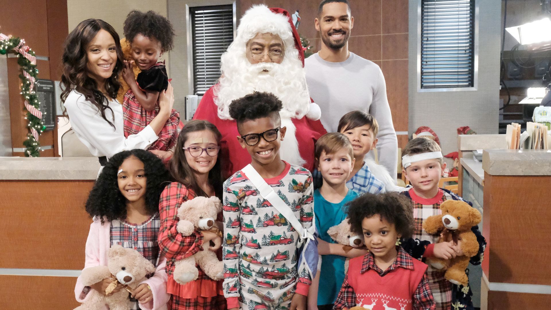 Over at the hospital that Tom Horton loved so much, Santa has gifts and cheer for the children. At one time, Tom donned his Santa suit each year to bring joy to sick kids, but after he passed, various characters have taken on the Kris Kringle role, including Dr. Kayla Brady (Mary Beth Evans).