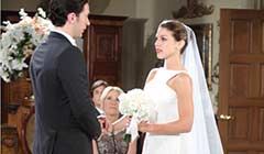 When Theo and Ciara returned to the mansion, Chad told the minister to go ahead and start the wedding ceremony. Doug, who had been warned not to trip earlier, did just that as he was walking Abigail down the aisle, eliciting good-natured laughs from everyone. At the end of the aisle, Abigail turned to face Chad -- and screamed in horror when she glanced over his shoulder and saw Ben standing out on the terrace, staring at her through the window.