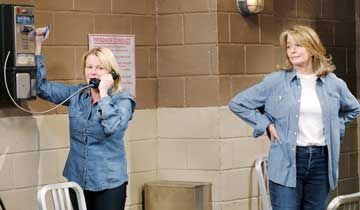 Hattie, who was planning to ask the governor for a pardon, complained that it was going to take ages for the ancient computer to boot back up again, but Adrienne didn't care. "I'm not playing anymore! You're gonna help me get my life back from Bonnie Lockhart, and you're gonna do it now!" Adrienne insisted.