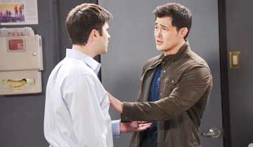 Steve pointed out that Tripp could still pursue a career in medicine at any other hospital in the world if he wished to do so. "I'd support that decision, and I'm sure Kayla would, too...[although] we'd hate to see you leave Salem," Steve continued. "Yeah, I would, too," Tripp admitted, adding with a chuckle that the town was actually starting to grow on him.