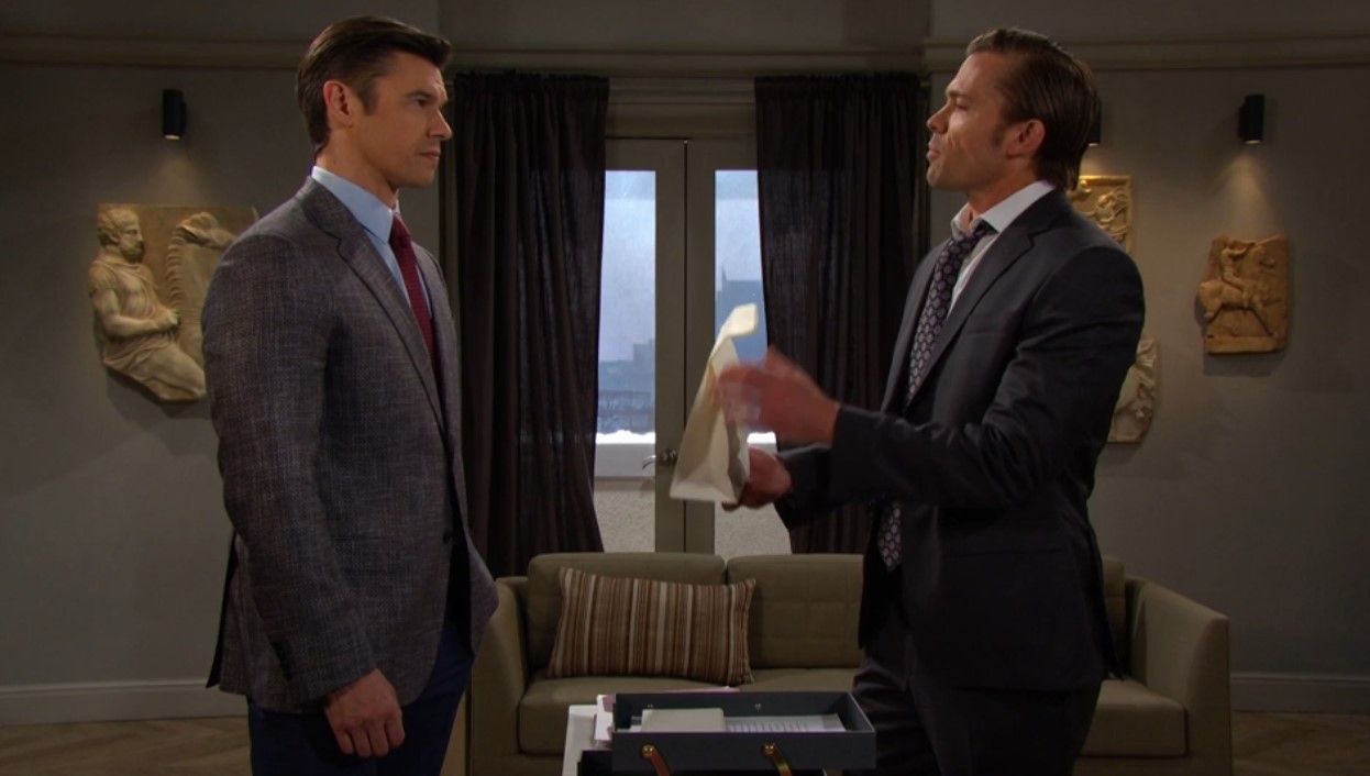 Philip considered the CEO position his last chance to honor Victor's legacy and to prove himself to his father, whom he thought was still watching over him. Xander admitted that he felt the same way. Philip wondered what it might have been like if he’d know Xander was his brother all along. He took the croissant out of the bag, offered half of it to Xander, and suggested they “break bread” together. Xander tore off a chunk of the bread, and the brothers consumed their “peace offering.”
