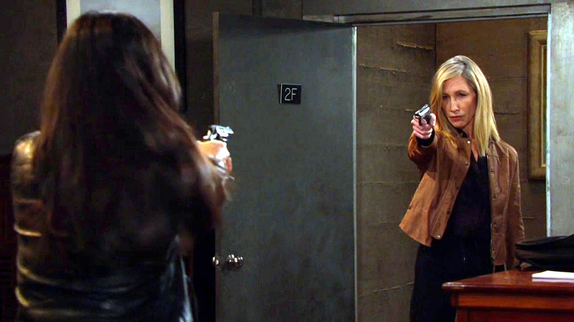 Cat tried to break through to her mother and appeared to succeed. She untied her, and the two embraced, but Catherina swiped the gun from Cat and absconded. It was so obvious that Catherina was going to go for the gun!