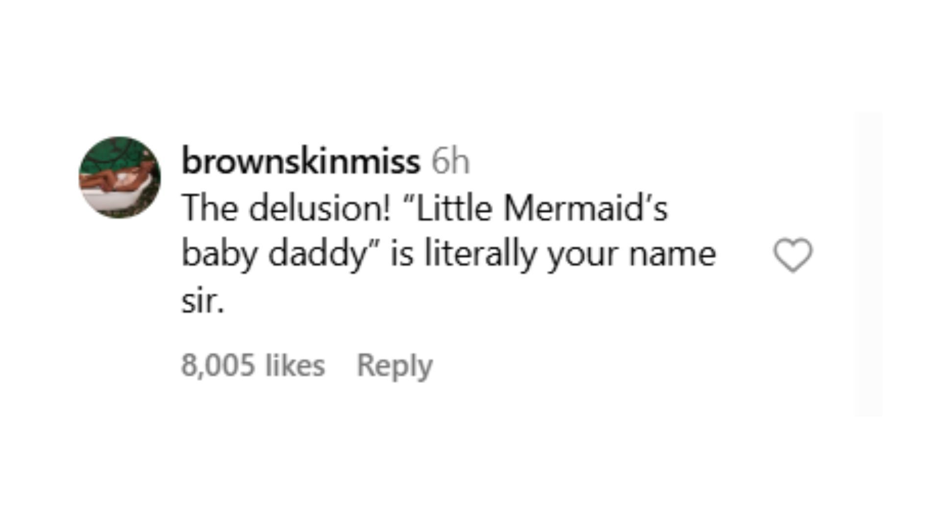 “The delusion! “Little Mermaid’s baby daddy” is literally your name sir.”