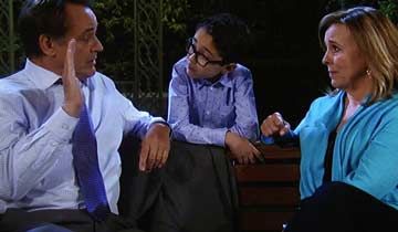 Laura agreed to move in with Kevin just as Spencer returned wondering about the move. Laura wondered what Spencer would think about moving in with Kevin. "That depends. What are your intentions for my grandmother? Is it serious or just a casual fling?" Spencer asked Kevin.