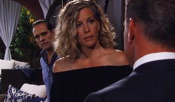 Carly sat down to eat breakfast and sip on coffee while she and Sonny reminisced about their trips to the island over the years. Sonny assured Carly that she would always be welcome to visit the island, regardless of whether they were married or not. Carly glanced at the ocean as she confessed that she could feel her blood pressure dropping. Moments later, Sonny received a text message from the liquor distributor postponing the meeting until the following morning, which meant that Sonny and Carly would have to spend the night. Carly immediately grew suspicious because she was certain that Sonny had set the whole thing up.