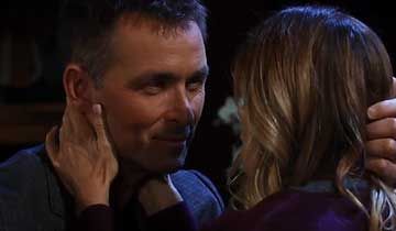 At the Floating Rib, Hayden caught up with Finn. After an affectionate greeting, Finn admitted that he hadn't expected to arrive before she had. Hayden confessed that she'd been there earlier, but she had left. Finn was filled with questions, but she wanted to know about his visit with Liesl. Finn told her that Liesl was mulling things over, but he was hopeful that Liesl would agree to his terms. Hayden smiled and kissed him. Finn gently rubbed her tummy as they cuddled at the bar.