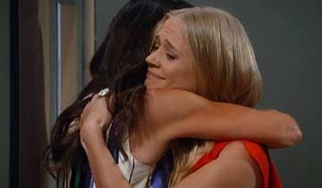 Meanwhile, Elizabeth asked how things were between Hayden and Finn. Hayden acknowledged that the pregnancy had been a big surprise, but she and Finn had adjusted, and things were good. Elizabeth asked about Finn's recovery, so Hayden assured her sister that Finn had a good handle on things. Hayden realized there weren't any guarantees, but Elizabeth thought it might be a good idea for her sister to familiarize herself with the warning signs of a possible relapse. Hayden agreed, but things took a sudden turn when Hayden gasped with pain and clutched her stomach.