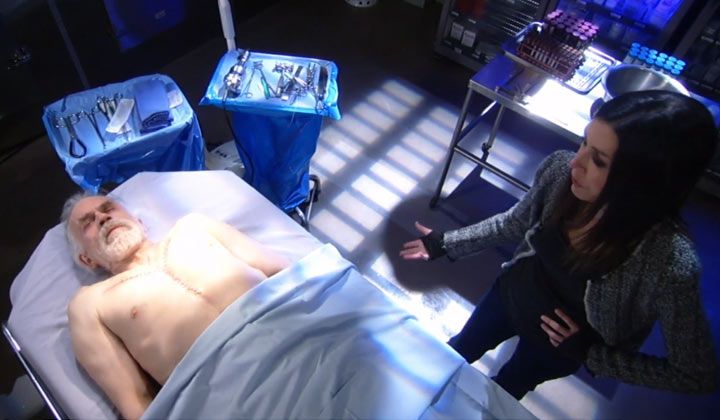 "Here you are, and here I am. I'm still standing. I made it," Anna continued. She revealed to Faison's corpse that there was a child out there, "our child." Just then, Faison sat up and grabbed her arm. "Is it Henrik?" he growled. The tech burst into the room and asked Anna if something was wrong. She looked down at Faison's body on the table and replied, "Nothing at all."