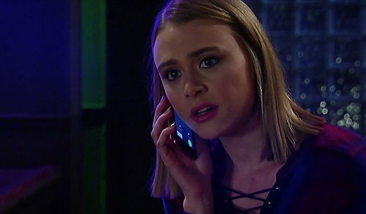 Nelle arrived at a pay phone and put money in with her gloves on. She dialed a number, and the line rang. At Sonny's, Carly looked at the phone, which read "unknown caller." She picked it up, thinking it was Mike, and heard back only silence. On the other end of the line, Nelle retrieved a small electronic gadget from her bag and spoke into it. "I'm here," she said, revealing the box to be a voice changer.