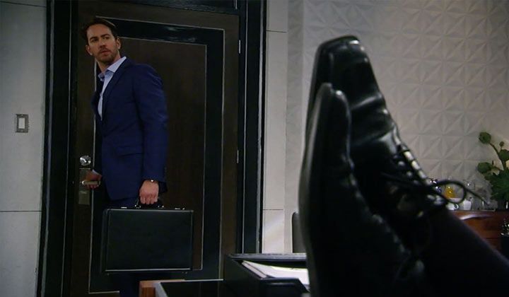 A short while later, Griffin returned and hoped to put the test results out of his mind by destroying them. There was a knock on the door, and Nelle entered with some contracts for Ava. Griffin was on his way out, so Ava told him that she loved him. "I'll see you tonight," he replied, and she closed the door behind him. Ava signed the contracts and thanked Nelle for delivering them. Nelle commented that Ava was on Nelle's way to the hospital. It suddenly dawned on Ava that Nelle had a birthing class that day.
