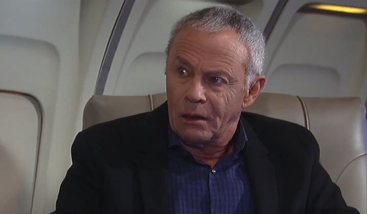 Robert sat on the plane with a drink. He took a sip, shook his head, and rubbed his eyes. "I hope you enjoy your drink," Valentin said as he sat across from Robert. "It's stronger than you're used to." "Son of a --" Robert stammered. "Nighty night," Valentin cooed as Robert passed out.