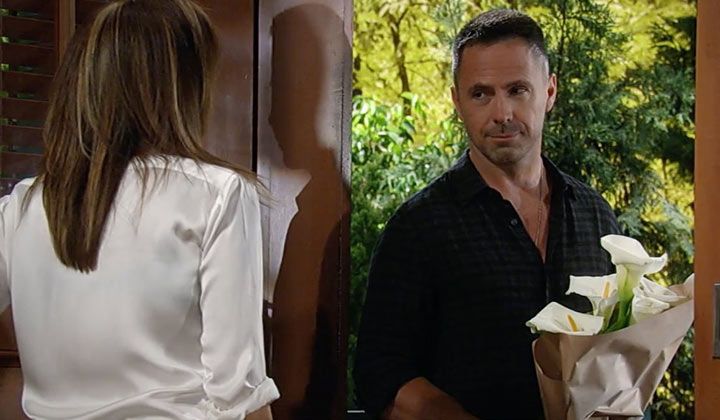 On the phone with Molly, Alexis insisted that she was fine. The doorbell rang, and she ended the conversation. She opened the door to Julian, who had a bouquet of flowers in his hand. He wanted to make sure she was all right, but she told him that he didn't have to worry about her. He thought that she deserved to be happy, and she replied that it couldn't be with him. He informed her that people were capable of change and that he was trying to be better because of her. He admitted that he didn't think he could live without her.