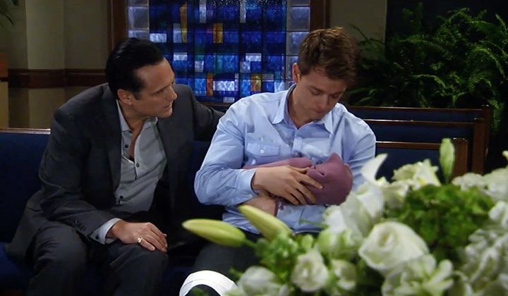 Elizabeth entered, and Michael wondered if she was there for his son. "Only when you're ready," she said soothingly. "I love you," Michael said to the baby. He kissed the baby and handed him to Elizabeth. When he was gone, Michael collapsed in Sonny's arms in tears.