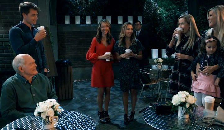 Back outside, Brad was grateful for the coffee and thought it would help him before he took Wiley off to the passport office. Sam teased that fatherhood was causing Brad to have to flee the country, and Brad flashed back to Nelle giving him her baby. As he sat quietly in his own thoughts, the Davis women stared at him until Sam and Kristina began to joke.