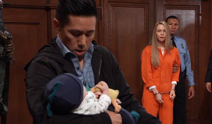 Chase reminded Nelle that he had the recordings. He had almost let his feelings for her allow her to get away with murdering Zachary Grant, but they wouldn't. He hoped that Carly and Michael didn't pay attention to Nelle. Carly admitted that going through everything in court would be torturous. Just then, Brad arrived with Wiley in his arms. He stopped short and looked fearful when he saw the congregated group. Nelle turned and saw Brad and the baby.