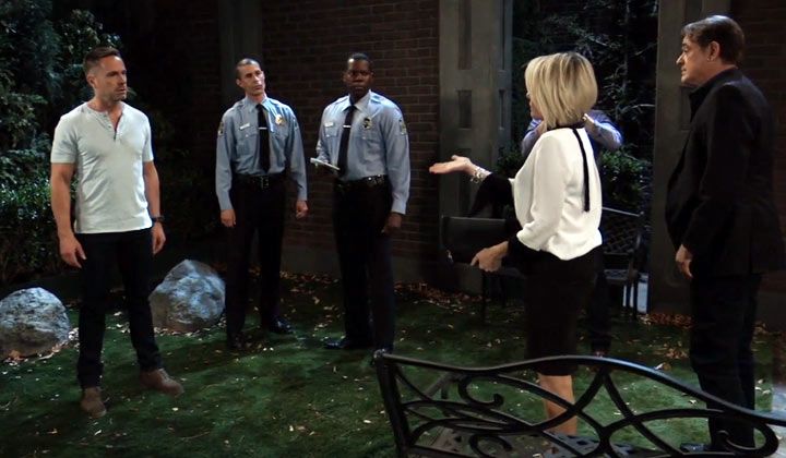 Julian tried to explain to a cop that Kevin had provoked him. Ava sat with Kevin on a nearby bench and made sure he was okay. Julian wanted Ava's help to explain the misunderstanding, but she looked at Kevin. Julian pleaded with her, but Ava and Kevin agreed that they would get Ryan's attention better if she stuck by Kevin's side. Ava told Julian she was sorry that she couldn't do anything. Kevin announced that he wanted to press charges against Julian.