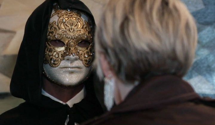 Nina wondered if Valentin was still thinking about the portrait of Helena, and he admitted that Laura and Jax made him think that it was worth more than he'd thought. The two went off to dance, and Ava wondered if the portrait was worth more than she'd thought. Chase and Willow entered the party, dressed as Buzz Lightyear and Jessie, and they started to dance. The man with the crested ring entered in a mask and a long cape.