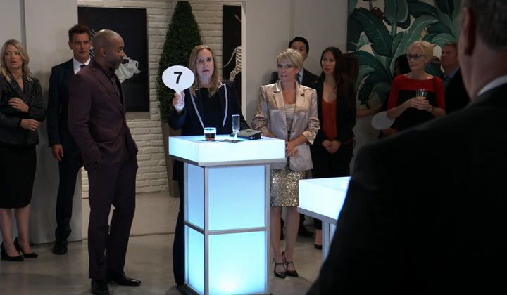 Jax remarked that no one was laughing. "Almost no one," Laura retorted. Ava suggested that the artist might be behind it. Curtis noted that the artist was long dead, but Ava revealed that the estate had known about the auction. A horrified Nikolas looked on from his tablet in the storeroom. Ava announced that the event was over and claimed she hadn't known about the painting's subsequent demise. Laura didn't believe her.