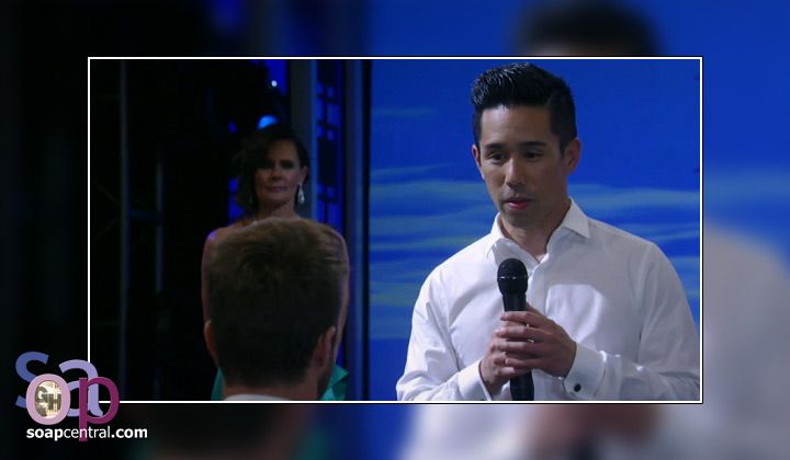 In the ballroom, Lucy tried to salvage the show by dragging Brad to the stage to finish Ric's song. Brad reluctantly agreed but decided to make it upbeat, so Felix ran backstage to grab half a dozen men to act as backup dancers during the performance. Brad sang the song to Lucas as the crowd swayed along to the song. Afterwards, everyone erupted in applause, including Lucas, who gave Brad a standing ovation. Pleased, Lucy returned to the stage and thanked Brad then remarked that there hadn't been any pressure for him to propose to anyone.