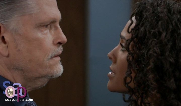 A furious Laura balled up her fists and refused to let Cyrus use Lesley as a scapegoat for his lifetime full of horrible decisions. He countered that he needed her to resolve Florence's situation promptly. "How would you feel if something happened to your mother?" he wondered. "Spoken like an innocent man," she remarked sarcastically, and she walked away. She found Lesley crying in a conference room. Lesley couldn't shake the feeling that the recklessness she'd enjoyed in her youth had led them to the pain they were feeling.