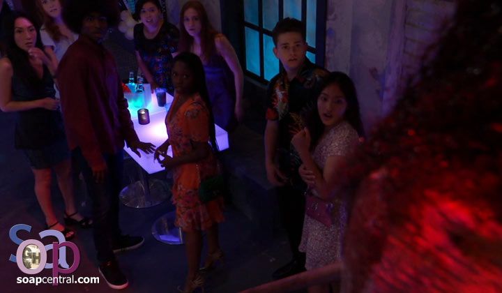 At the Savoy, Trina's graduation party was in full swing. Jax congratulated Cameron on getting into PCU, and he warned Cameron and Josslyn to stay out of trouble. He insisted that he'd never gotten into trouble in college. Ava and Nina arrived, and Ava remarked that Curtis could give "Mike" a job there. However, Nina was adamant that "Mike" would never move to Port Charles. Jordan entered, and Ava congratulated her on taking down Cyrus. In the same breath, she wondered what Jordan was doing about the "madman" terrorizing her family.