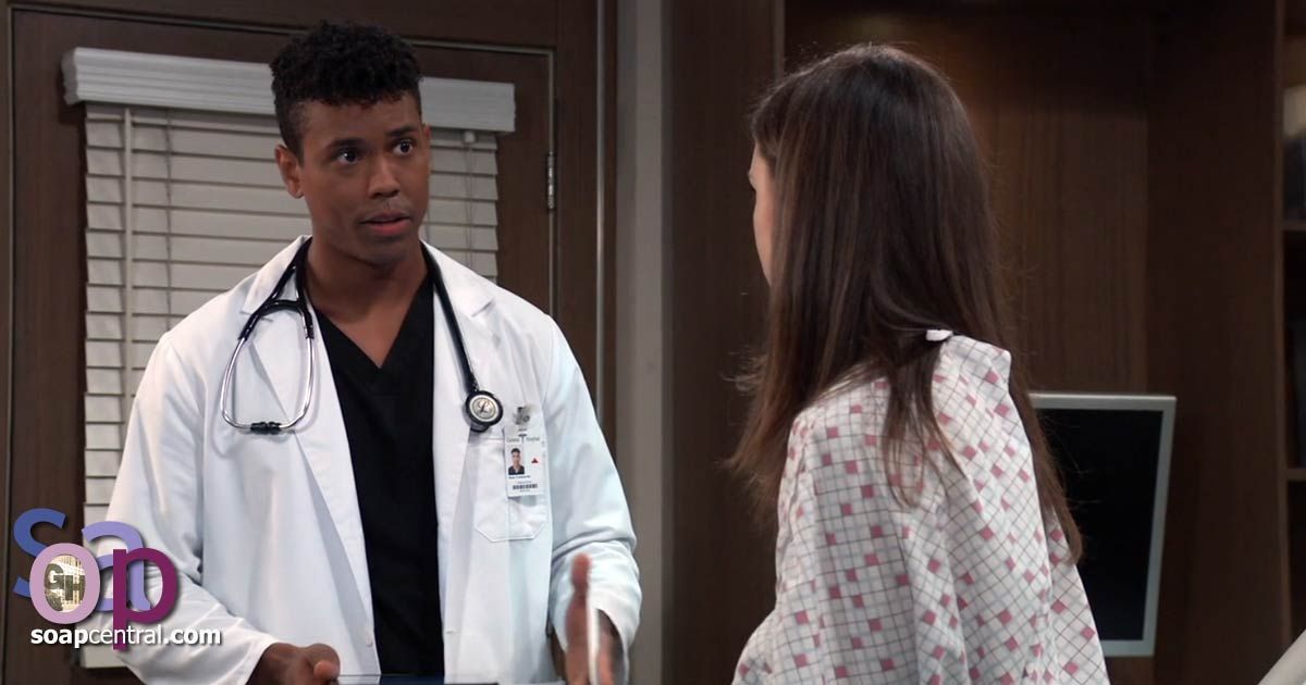In the exam room, Epiphany revealed that Willow's blood pressure was 80/50, which Willow agreed was low. However, Willow promised that she had eaten, and she blamed the fainting spell on stress. T.J. asked if Willow had had any other fainting spells besides the two that he knew of. Willow assured T.J. that she hadn't, but she reluctantly acknowledged that she'd had a few "brief" episodes of lightheadedness. T.J. sensed that Willow wasn't being entirely truthful.