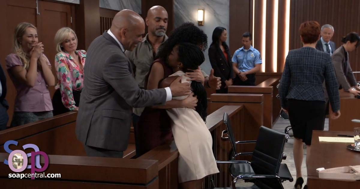 Taggert, Portia, and Curtis rushed to hug Trina, who cried and expressed her relief that the trial had gone in her favor. From the back row of the courtroom, Spencer stared at Trina and smiled widely. Ava and Josslyn also hugged Trina. Rory congratulated Trina on her freedom, and he asked if he could see Trina later. "Text me!" Trina said assuredly.