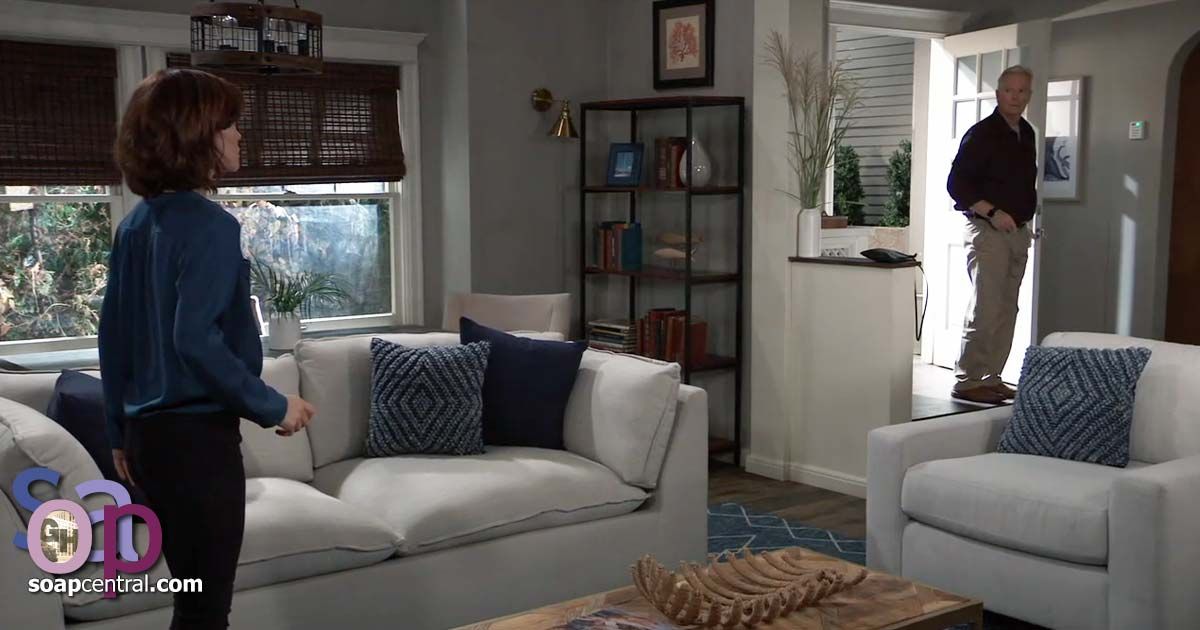 At the Port Charles Grill, Sonny ended a call about Lucy and got back to Nina. She offered to reschedule date night, but he replied that his people were out searching for Lucy. He wanted to enjoy their time together, and they shared a kiss. He suggested skipping dinner and going right to dessert. However, they were interrupted by his ringing phone, and he walked away to take the call. Just then, Victor arrived, and Nina demanded to know what was going on with Charlotte. Victor wondered if she was only so invested in his family because she had none of her own.