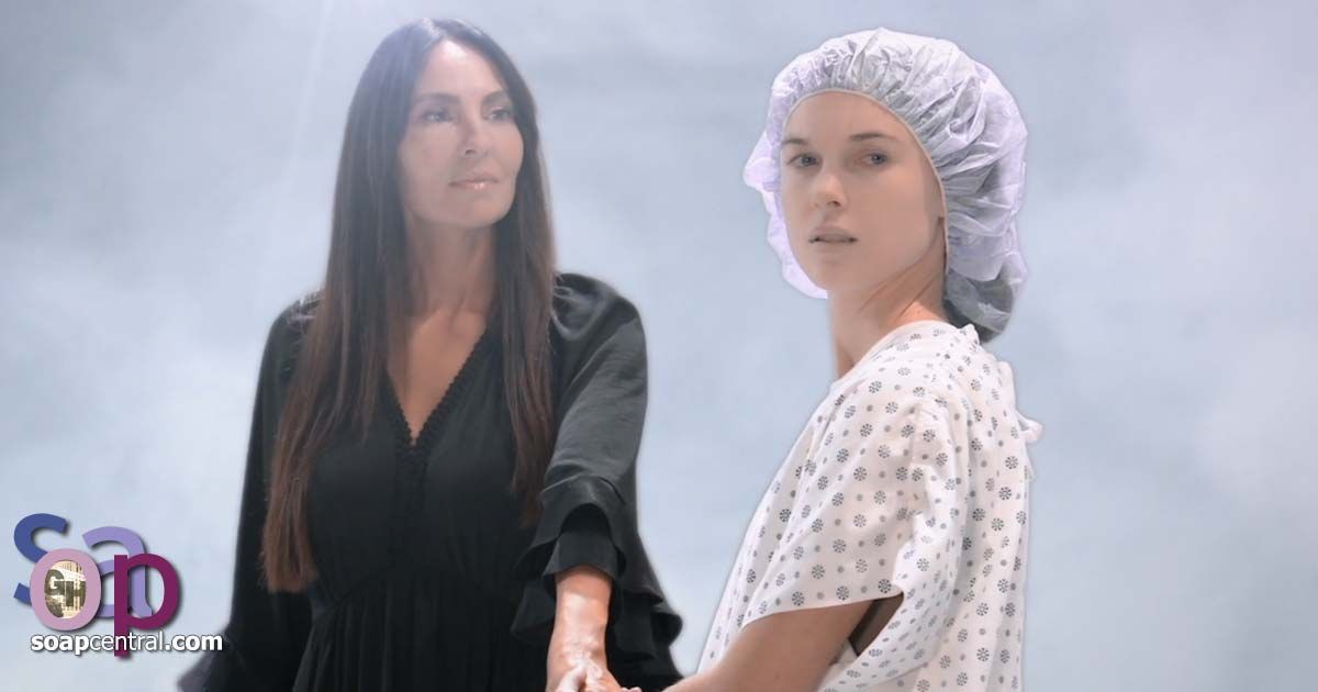 In the operating room, the alarms blared. "What's going on?" Austin asked. Dr. Navarro explained that Willow had started to hemorrhage. As the doctors raced to save Willow's life, Willow was bathed in a white light. The voices in the operating room receded as Willow heard Harmony call out to her. "Don't be afraid, sweetheart," Harmony said. Harmony stood in a swirling dense fog with her arms outstretched to Willow.