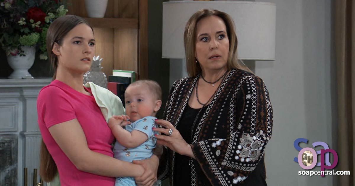 Esme had to put Ace down, and Laura joined her. They returned a few minutes later, and Esme commented that she loved the song Laura had sung to Ace. Esme couldn't imagine her own parents singing to her. Laura thought it was fortunate that they hadn't raised her, and she was sorry that Esme didn't have more happy childhood memories. Esme vowed to do everything right by Ace and give him everything she hadn't had. Just then, Ace began to cry, so Laura went to get him. She returned with him and handed him to Esme while she went to warm up a bottle. "I don't know what's keeping your brother," Esme said to Ace.