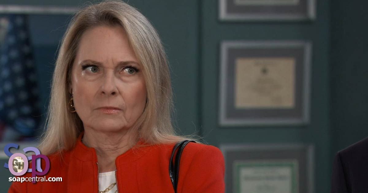 At the police station, Gladys approached Officer Robinson at the front desk and demanded to see Dante. "It's a matter of life and death," Gladys said. When Dante overheard the commotion, he asked Gladys what was going on. Gladys explained that she needed a restraining order immediately against his "pal Cody Bell" because Cody had ignored Sasha's visitor restrictions. She accused Cody of taking advantage of "an extremely vulnerable woman" by slipping into Ferncliff and upsetting Sasha.