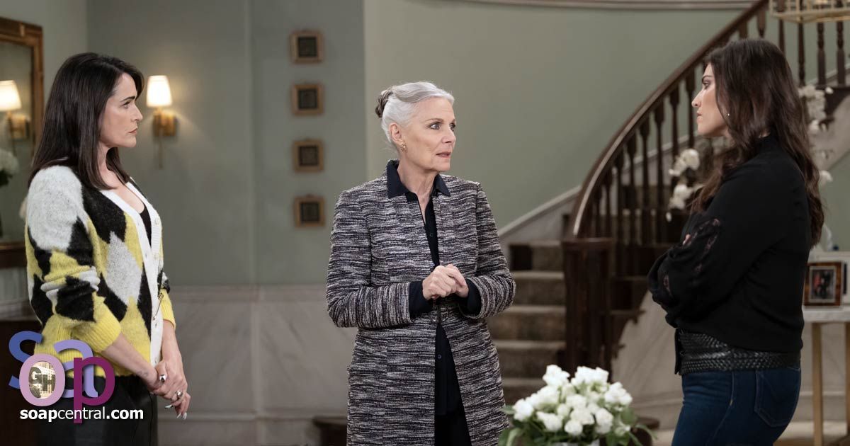 Laura noted that Esme and Trina had a history. Esme said that Trina and Portia had been helpful and friendly. Esme complained again that no one had an interest in knowing "the new Esme" after her amnesia and that people only remembered the "old Esme." Laura said that she wanted to get to know the "new Esme."