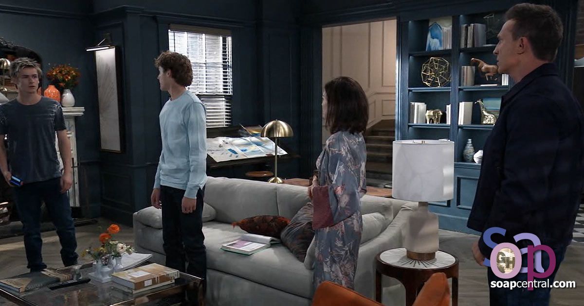 Just then, Jake entered from upstairs, and he laid his eyes on Jason. Jason greeted Jake, who asked why Jason was there. Jake was angry at Jason for not having confided to Jason's loved ones that Jason was alive. Jason said that he understood Jake's anger, and he added that he would have been in touch with Elizabeth and Jake much sooner if it had been possible. Jason acknowledged that it was a lot to ask, but he asked Jake to believe him. "Would you believe you?" Jake asked Jason.