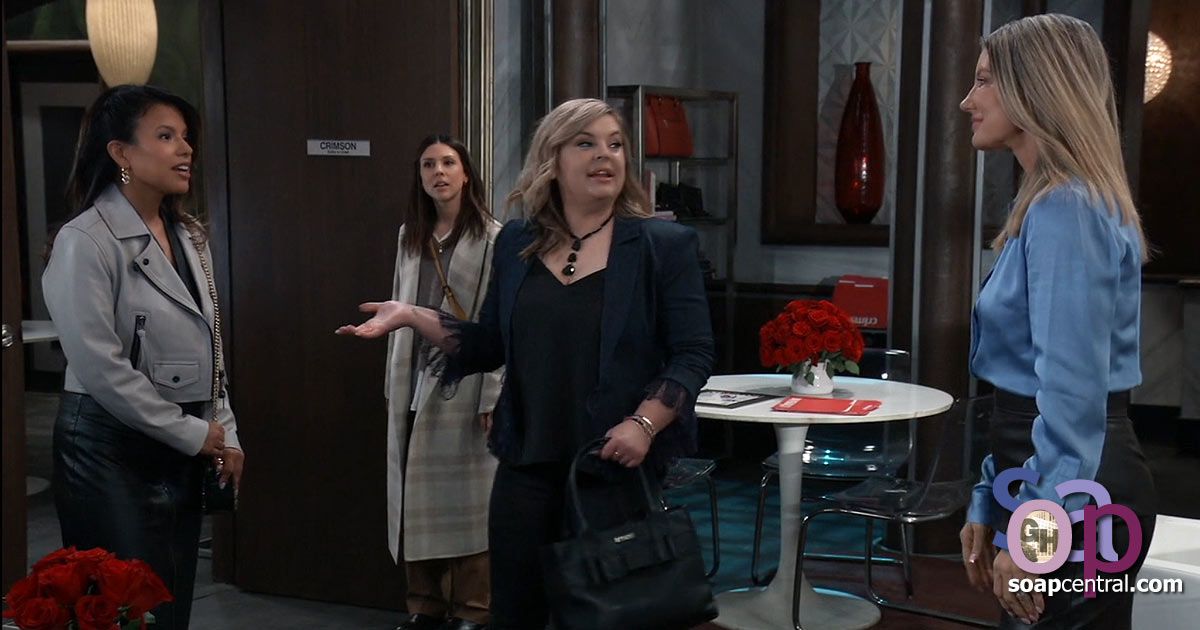 At the Deception office, Lucy, Maxie, and Brook Lynn were excited to welcome Blaze as the new face of Deception. Natalia entered, and she began to comb through Blaze's contract. Natalia demanded that Blaze not advertise Deception products for Home & Heart. Blaze wondered if Lucy, Maxie, and Brook Lynn would be open to hiring a separate person solely to advertise products for Home & Heart.