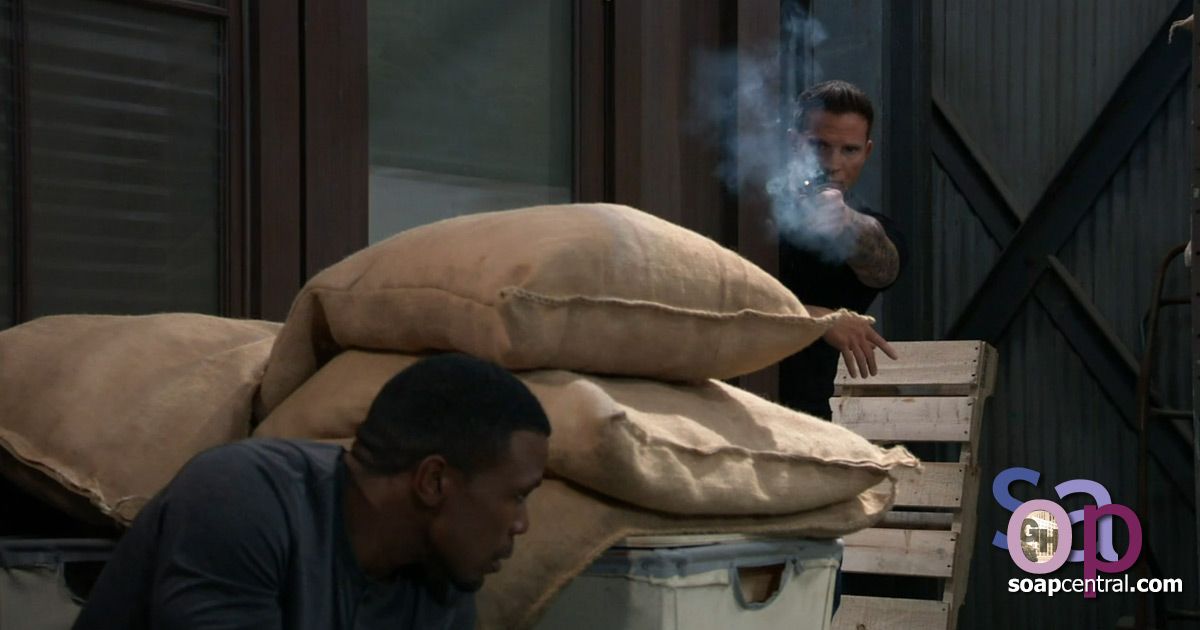 Later, Sonny walked into Metro Court and told Carly that he'd been dealing with Jason. Back at the warehouse, Jason heard something that put him on high alert. A man with a gun hid behind sacks of coffee beans while another shooter took a position nearby. Seconds later, gunfire erupted. Jason managed to take cover and pull out his gun, but he was pinned in.