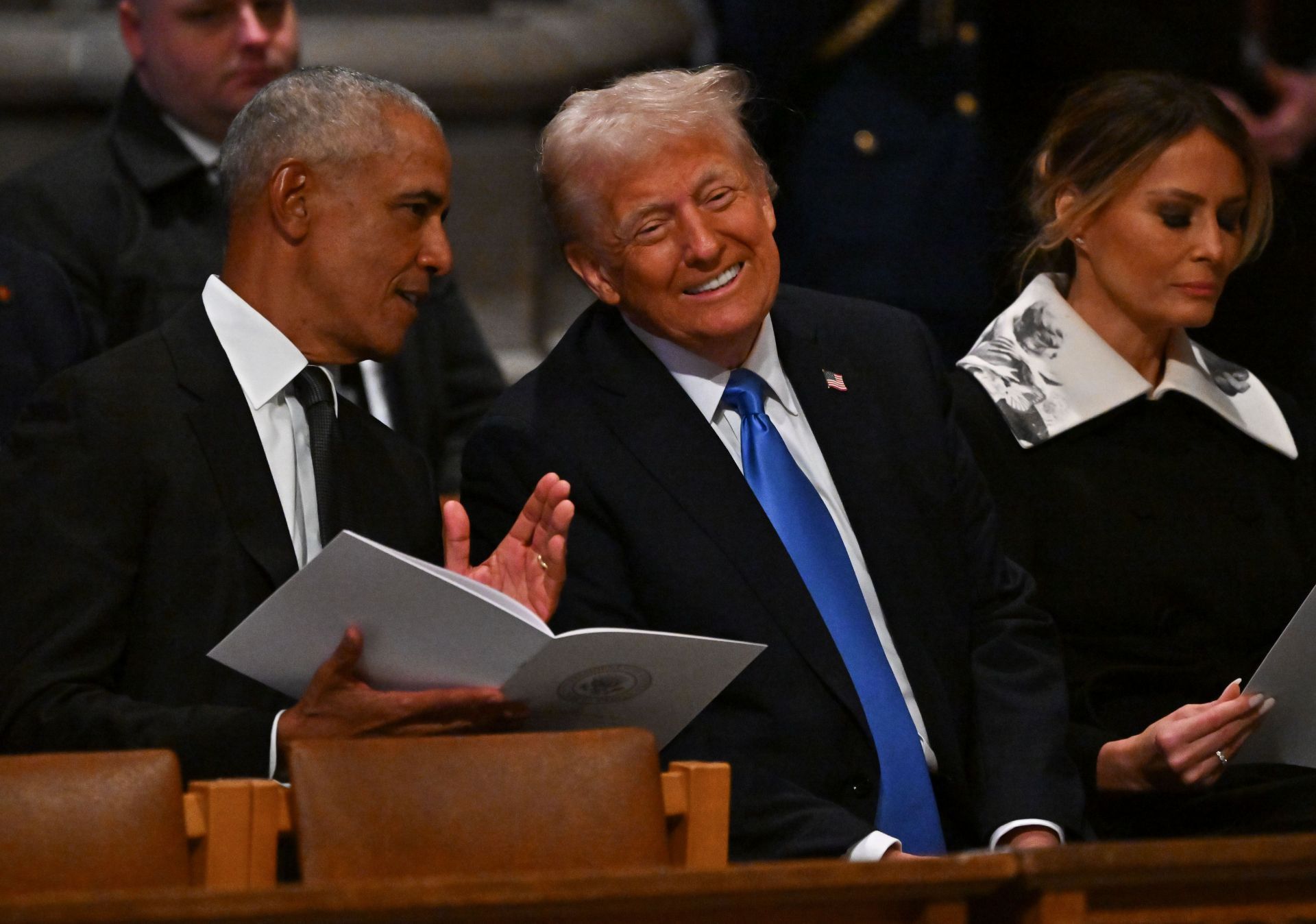President-elect Donald Trump and former President Barack Obama showed up sharing some very serious LOLs while attending the state funeral of former President Jimmy Carter, which was held on January 9, 2025.