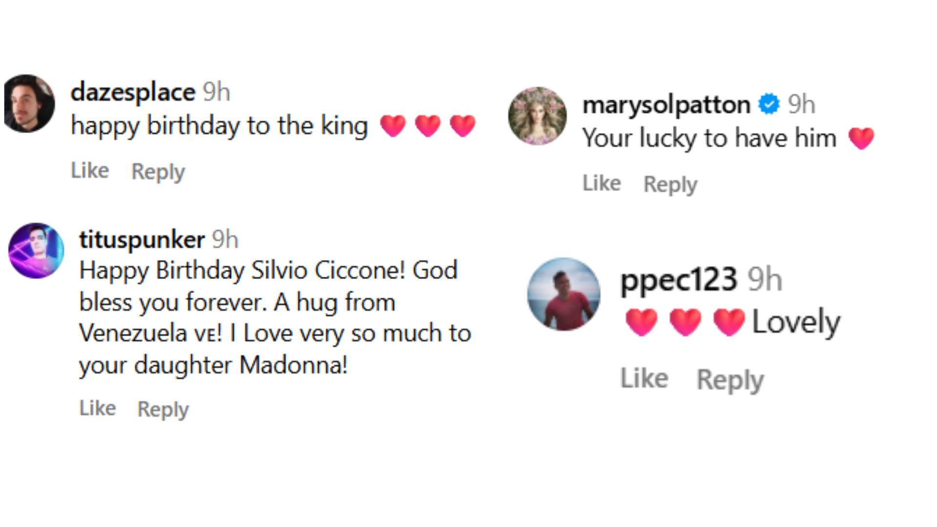 After seeing Madonna’s post, many fans left comments wishing Silvio a happy birthday. Messages such as