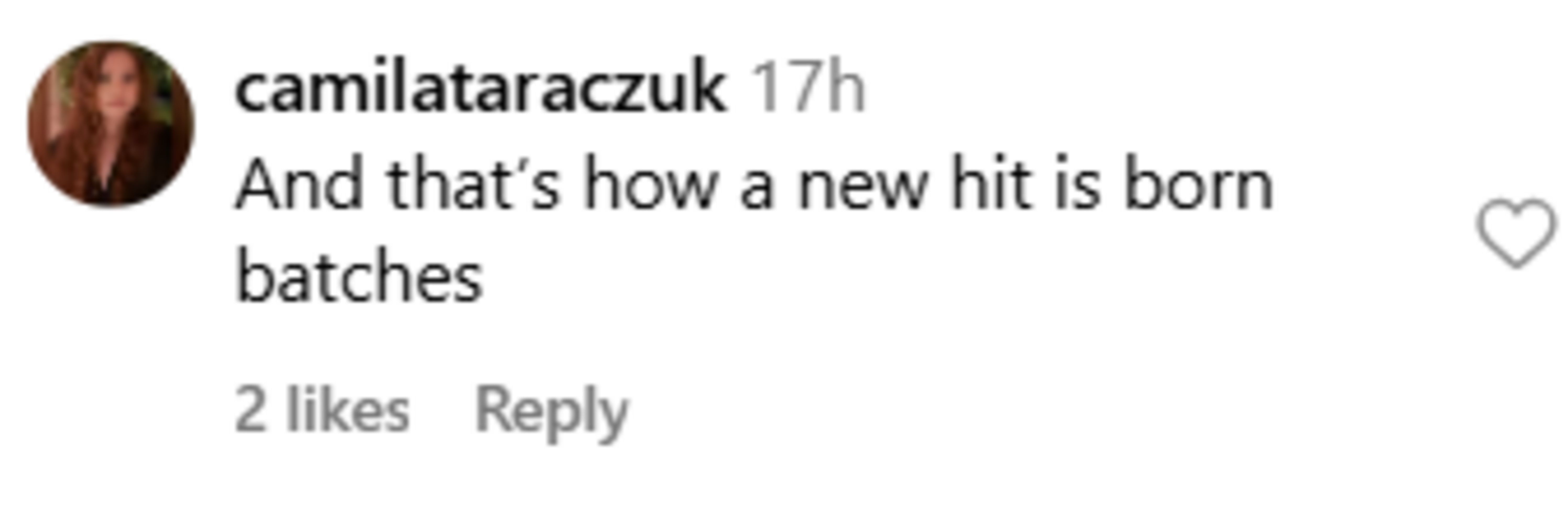 "And that’s how a new hit is born batches," a user, @camilataraczuk, wrote.