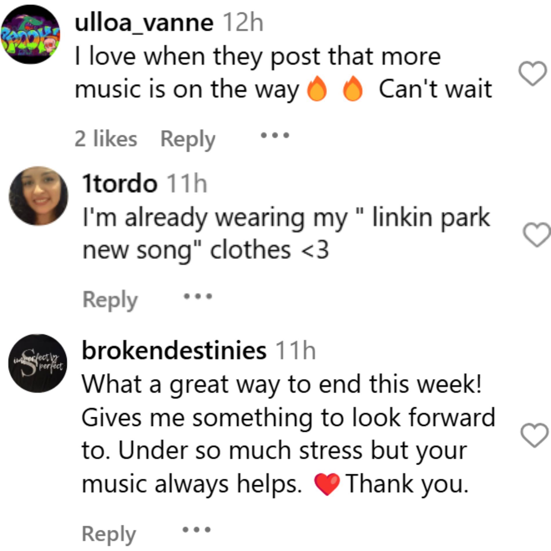 "I'm already wearing my " linkin park new song" clothes <3," one more user, @1tordo, wrote.