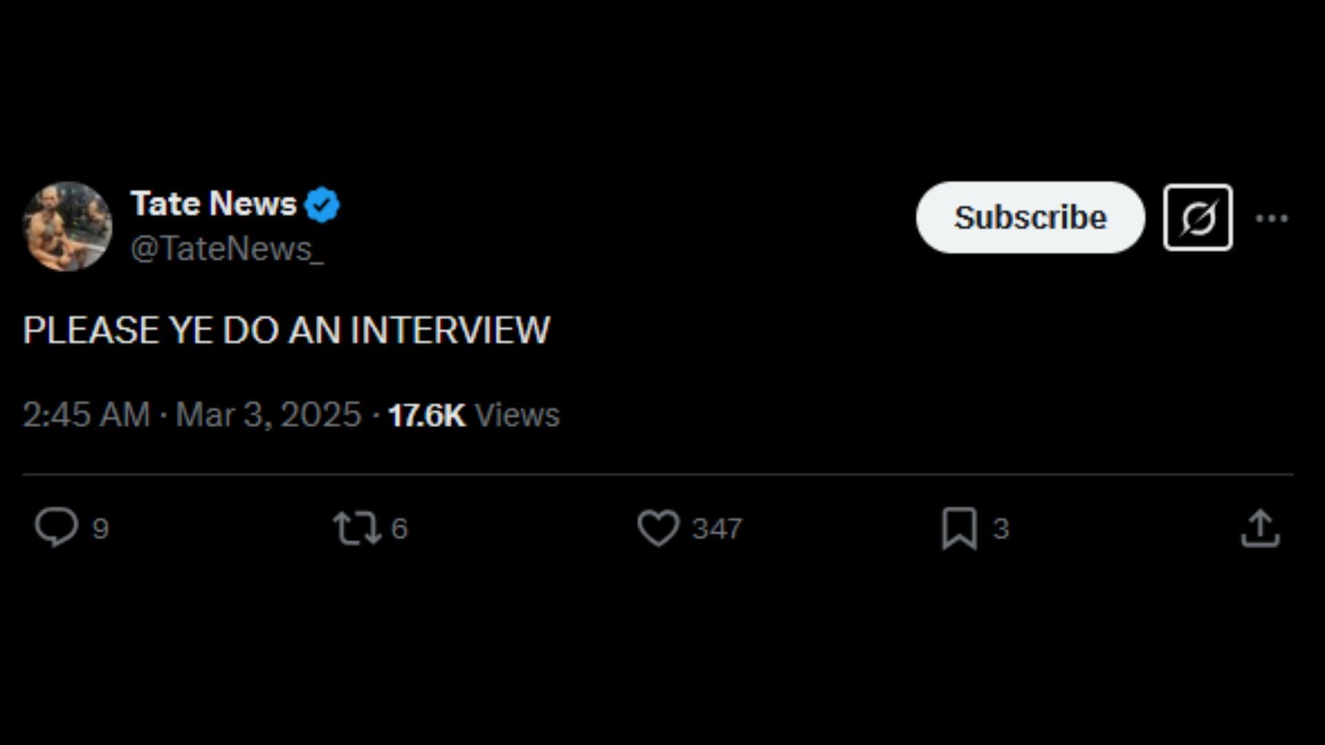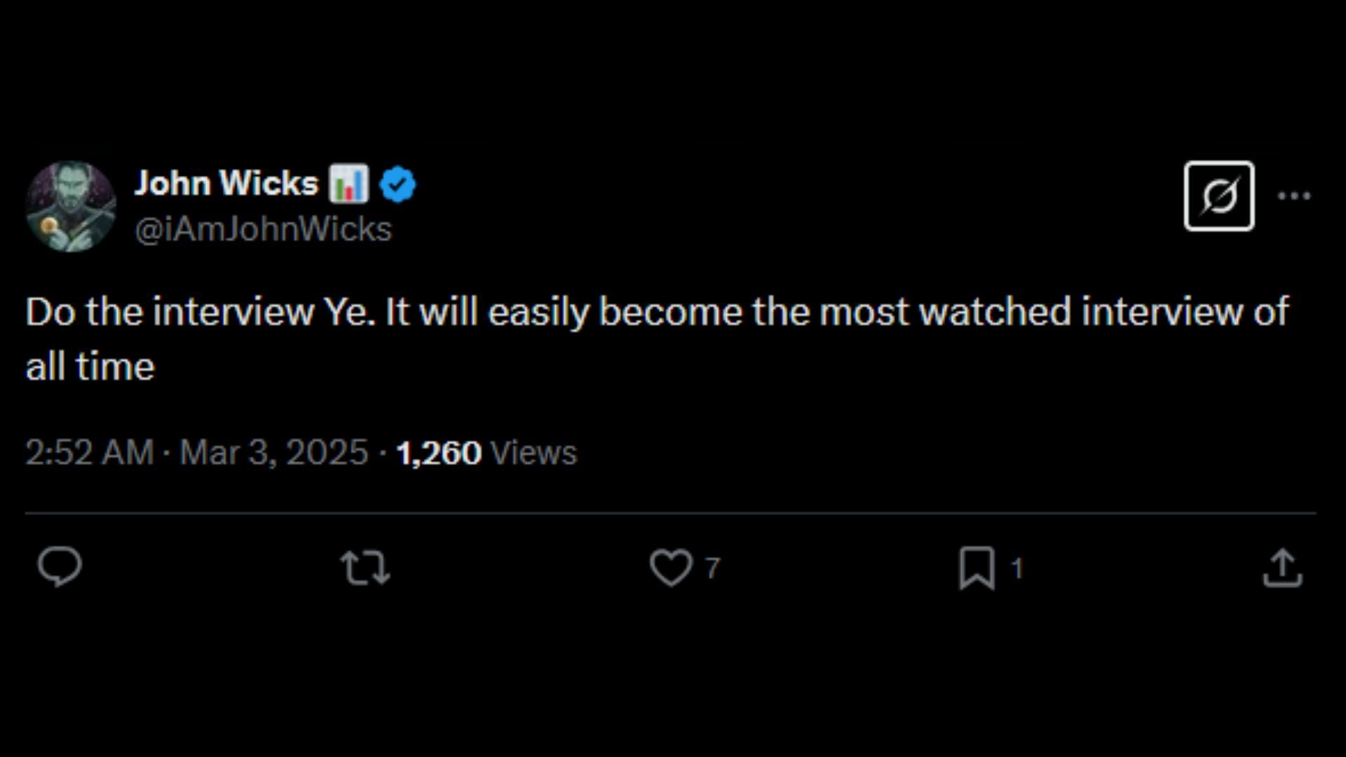 Another read: "Do the interview Ye. It will easily become the most watched interview of all time"