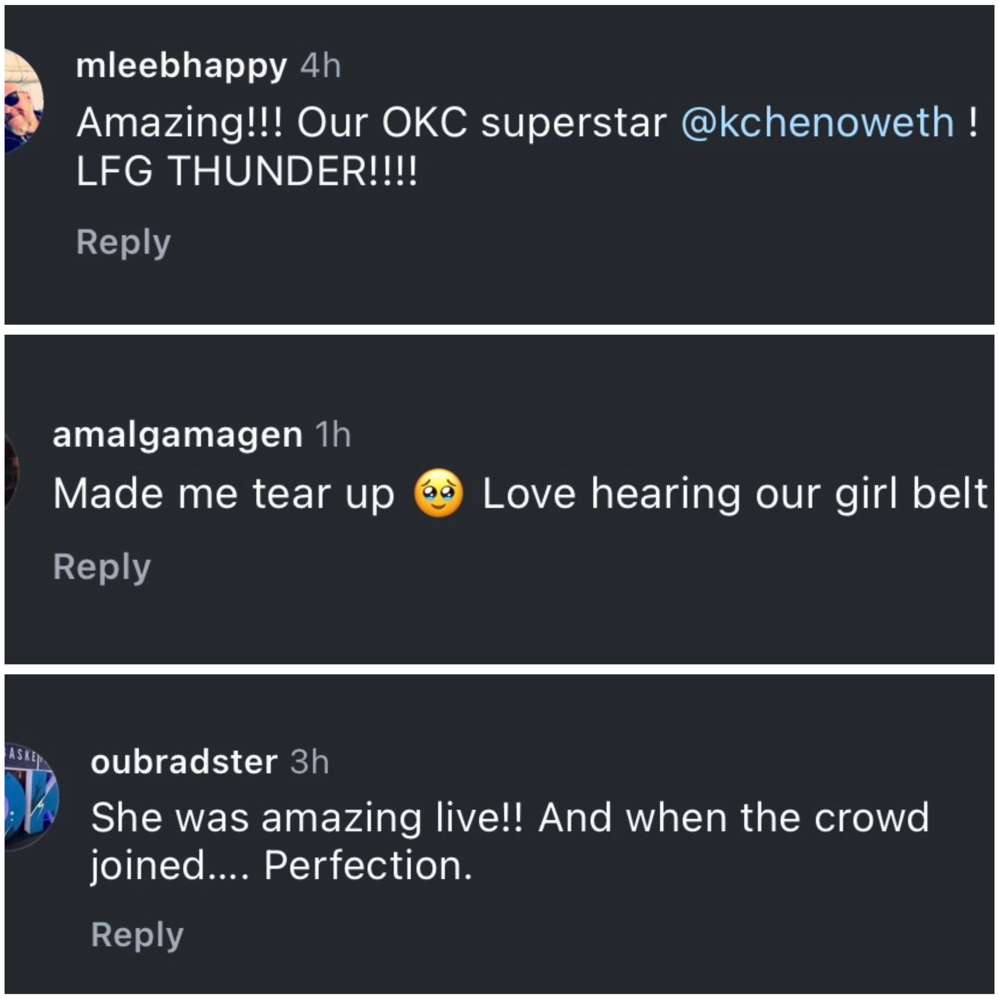 “Amazing!!! Our OKC superstar @kchenoweth! LFG THUNDER!!!!” @mleebhappy added.